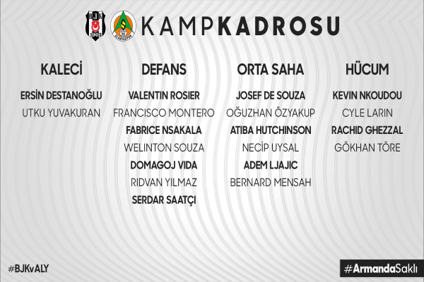 Muhteşem Lig takımlarından Beşiktaş, Harika Lig’in 33. hafta gayretinde konuk edeceği Aytemiz Alanyaspor maçının takımını duyurdu.