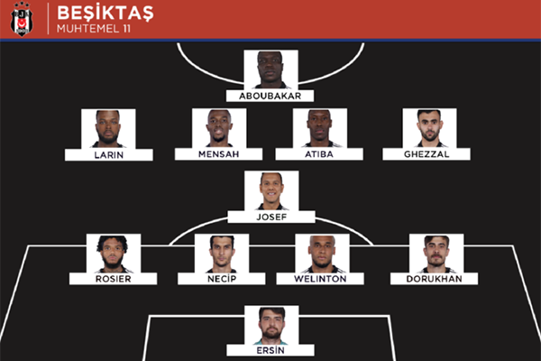 Beşiktaş (4-1-4-1): Ersin | Dorukhan, Welinton, Necip, Rosier | Josef | Ghezzal, Atiba, Mensah, Larin | Aboubakar