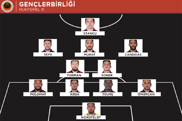 Gençlerbirliği (4-2-3-1): Nordfeldt | Ömürcan, Toure, Arda, Polomat | Soner, Furman | Candeias, Murat, Sefa | Stancu