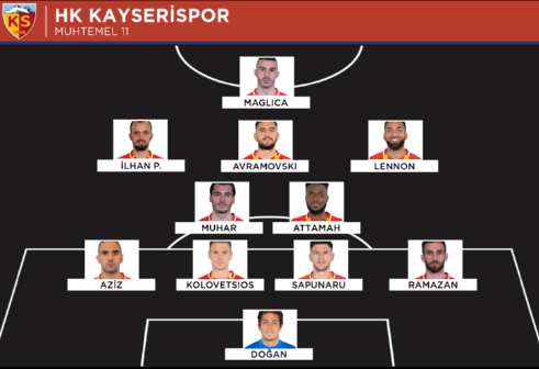 HK Kayserispor (4-2-3-1): Doğan | Ramazan, Sapunaru, Kolovetsios, Aziz | Attaah, Muhar | Lennon, Avramovski, İlhan P. | Maglica.