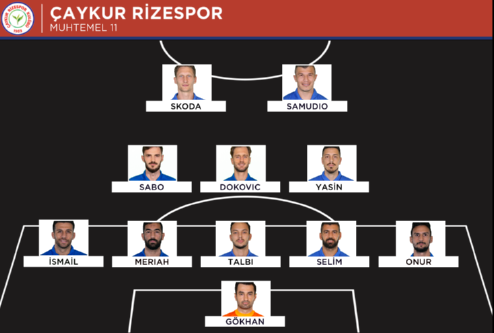 Ç. Rizespor (5-3-2): Gökhan | Onur, Selim, Talbi, Meriah, İsmail | Yasin, Dokovic, Sabo | Samudio, Skoda.