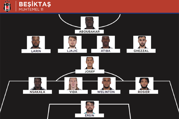 Beşiktaş (4-1-4-1): Ersin | Rosier, Welinton, Vida, N’Sakala | Josef | Ghezzal, Atiba, Ljajic, Larin | Aboubakar